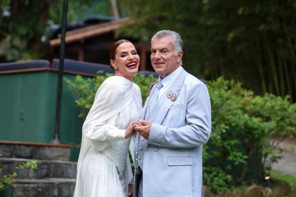 A escolha do vestido também carrega simbolismos importantes. “Quis algo que traduzisse esse novo momento da minha vida, mais confiante, mais serena, mas ainda com aquele toque de brilho que me acompanha. O vestido é uma mistura de romantismo com força.” Entre os detalhes, ela destaca a fluidez do tecido. “A leveza representa esse amor que flui com naturalidade, sem excessos, mas carregado de elegância e presença.”
